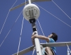 Eigentlich sind wir startbereit, alles ist gewartet und gefettet, die Fugen des Teakdecks ausgebessert, beim Motor der Ölwechsel gemacht, alle Systeme stehen auf „Go“. Nur die verflixte Internet-Antenne, die oben in der Mastspitze installiert ist, will seit kurzem plötzlich nicht mehr mit dem Computer kommunizieren. Nun hilft nix, da muss oben in 20 Metern luftiger Höhe nachgeschaut werden. Ergebnis: Kabel ist irgendwo gebrochen, muss neu eingezogen werden. Wenn man schon mal oben ist, dann wird auch gleich alles geprüft, und mit Siliconspray die Blöcke, Umlenkrollen und Lager geschmiert. Die kleine Frau an Bord hatte sich schon seit längerem beklagt, dass die Genua so schwer aus- und einzurollen sei.