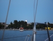 Welche Enttäuschung, das Schiff ist ursprünglich aus Duisburg, aber Sebastian kommt aus Westfalen und arbeitet jetzt in Wien…. Blöd, aber egal – Ein kleiner Smalltalk mit dem Eigner der Nausikaa an der Badeleiter, er ist sehr nett und wird sofort auf die FraTi zum Sundowner eingeladen. Wie sich herausstellt, ist der nach eigenen Angaben leicht zerstreute Professor, tatsächlich einer. Im Schein der Gaslaterne ist es eine angeregte und kurzweilige Unterhaltung. Es werden umfangreiche Informationen ausgetauscht. Wir erfahren viel über das Segeln in Griechenland, Sebastian über die Einstellung der bayrischen Inntal-Bevölkerung zum Brennerbasistunnel.