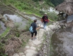 Von unseren Führern erfahren wir, dass bereits viele der Terrassenfelder brach liegen, da immer weniger Menschen bereit sind, die schwere Knochenarbeit in den steilen Reisfeldern auf sich zu nehmen. Im Tourismus und im Straßenbau sind die Pesos eben leichter zu verdienen als auf den Feldern.